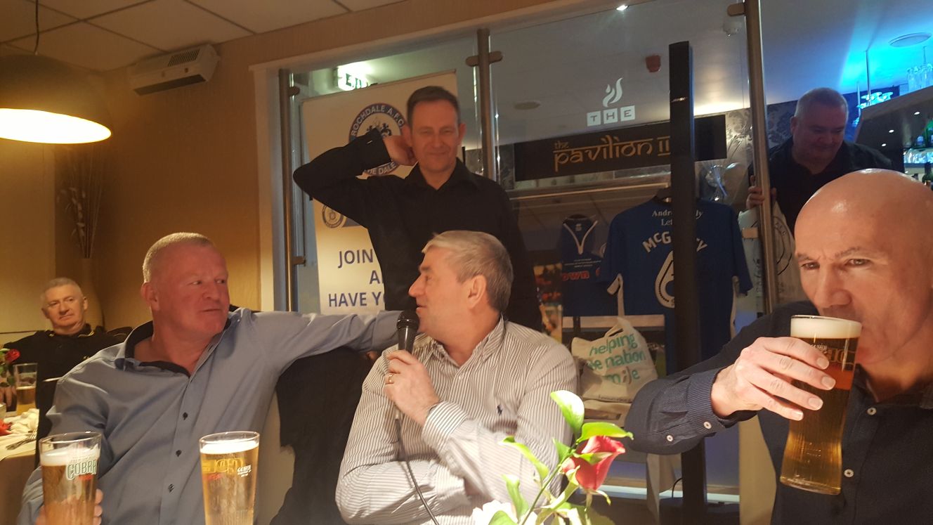 The triple bill guest speakers were Dale legends Steve Whitehall, Mark Stuart & late substutute Dave Thompson (replacing Shaun Reid who unfortunately couldnt make it) who all didn’t disappoint as they gave humorous review of their careers which included a staggering 808 appearances & 166 goals for the Spotland club.