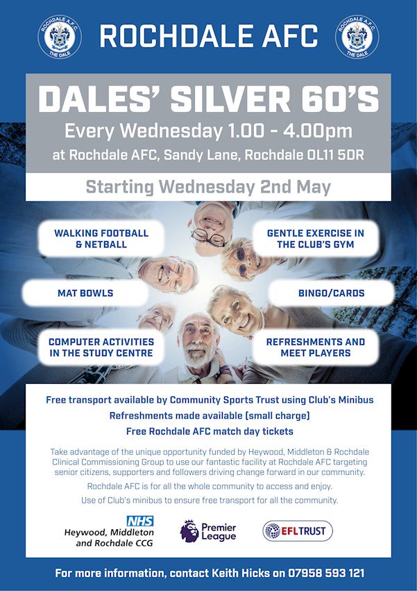 Interested? For more information, contact Keith Hicks on 01706643836 or 07958593121, or email keith.hicks@rochdaleafc.co.uk.