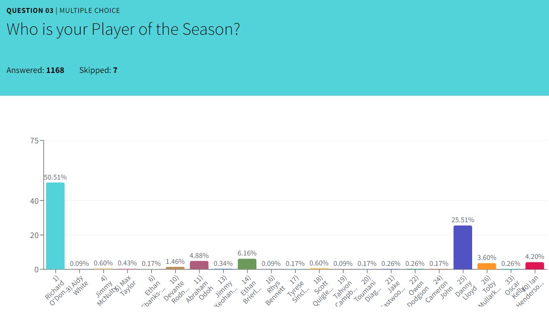 We had more votes for this than we have ever received before with almost 1200 votes in. O’Donnell picked up just over half of the votes with 50.5% going his way ahead of Danny Lloyd who picked up 25.5% of the votes.