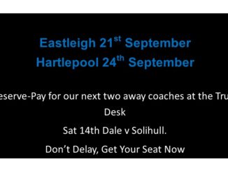 Coach Bookings for our next next away game at Eastleigh are being taken now, Hartlepool can also be reserved too. The Trust organised coach travel to away games has proven […]
