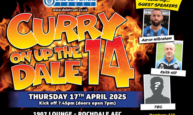 The Trust signs up Keith Hill, remember him? Along with Aaron Wilbraham and one other guest to be announced for the “hottest” ticket in town… Curry on Up The Dale returns and it’s year no 14!