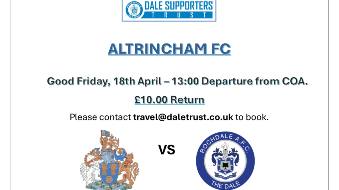 Dales Derby game at Altrincham. Make life easy. Use the Trust Coach, see below.