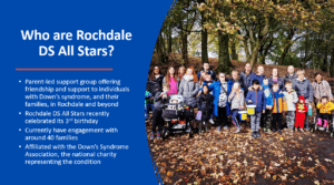From the Dale Trust’s perspective, Rochdale DS All Stars stood out. As a small yet dynamic, relatively new group, we felt we could make a significant difference to their members through this initiative and with donations, as well as the awareness and connections we hope to raise on their behalf.”