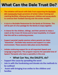 • The initiative will launch with Dale Trust supporting the Rochdale AFC Community Trust’s provision of winter indoor training and coaching facilities, allowing the group’s children and young adults to continue their football training over the winter months.