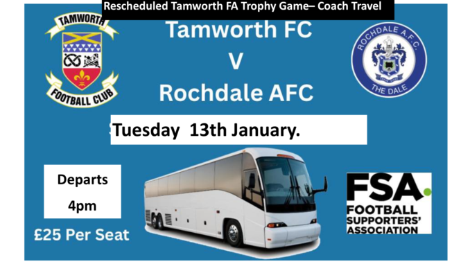The coach will depart from the “Mill About” cafe/restaurant at Spotland Mill, which is two minutes from the ground. Please park in your usual places, as the Club carpark will be closed.