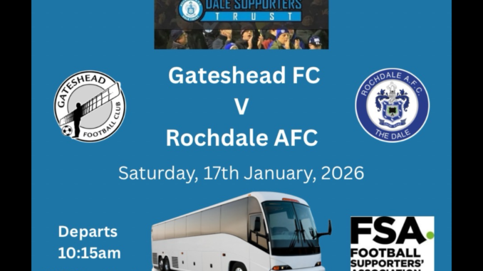 With demand starting to flow we wanted to remind members and fans that bookings for our coach service to Gateshead for our national league game on Saturday, 17th Jan is open.