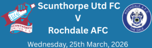 Scunthorpe. (Evening Game) 25th March, depart 4:15 pm, cost £15.00